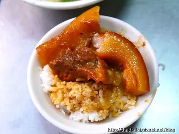 傍晚時間才吃了A古,還覺得不夠滿足,順路來到三年多前對彰化爌肉飯第一次的驚艷回憶,成功路的夜市爌肉飯,雖然店還開著,但心中早就有了心理準備,果然~才在門口探望著,老闆就不好意思的說只剩肉燥飯了,也是,都六點左右了。 阿本是近期才放進口袋裡的店,騎著ubike從下午到傍晚吃了幾攤,催眠自己也有在運動(咦?),那就到阿本再吃一碗做為今日的結尾吧!店面整體感覺蠻有歷史,攤子上有不少小菜,桌椅則擺在騎樓,由於肚子空位已經不多,只點了餛飩湯和爌肉飯,特地交代老闆要肥一點,挑了一塊十分豐厚的皮脂,不敢吃肥肉的人,看了肯定敬謝不敏,但我必須要說,彰化有些厲害的老店就是可以把肥肉轉化為濃郁而不膩。這碗的肥肉雖尚未到毫不油膩的程度(殘留的油質感有點類似阿正),但是一切即分、入口易化,那是不需多說的。不曉得是否加了紅麴(想起台中的東興市魯肉義),特別在於偏紅的顏色,而口味方面鹹甜味較重,甜味更多一點,算是目前吃過的彰化爌肉飯中,比較獨樹一格,這滷汁澆進飯裡,再配上一口肥皮,真是下飯。餛飩口感也不差,偏油夠味的湯,頗有古早味~…查看更多
