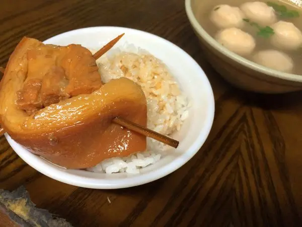 傍晚時間才吃了A古,還覺得不夠滿足,順路來到三年多前對彰化爌肉飯第一次的驚艷回憶,成功路的夜市爌肉飯,雖然店還開著,但心中早就有了心理準備,果然~才在門口探望著,老闆就不好意思的說只剩肉燥飯了,也是,都六點左右了。 阿本是近期才放進口袋裡的店,騎著ubike從下午到傍晚吃了幾攤,催眠自己也有在運動(咦?),那就到阿本再吃一碗做為今日的結尾吧!店面整體感覺蠻有歷史,攤子上有不少小菜,桌椅則擺在騎樓,由於肚子空位已經不多,只點了餛飩湯和爌肉飯,特地交代老闆要肥一點,挑了一塊十分豐厚的皮脂,不敢吃肥肉的人,看了肯定敬謝不敏,但我必須要說,彰化有些厲害的老店就是可以把肥肉轉化為濃郁而不膩。這碗的肥肉雖尚未到毫不油膩的程度(殘留的油質感有點類似阿正),但是一切即分、入口易化,那是不需多說的。不曉得是否加了紅麴(想起台中的東興市魯肉義),特別在於偏紅的顏色,而口味方面鹹甜味較重,甜味更多一點,算是目前吃過的彰化爌肉飯中,比較獨樹一格,這滷汁澆進飯裡,再配上一口肥皮,真是下飯。餛飩口感也不差,偏油夠味的湯,頗有古早味~…查看更多