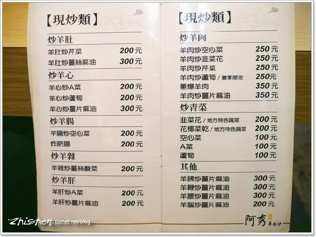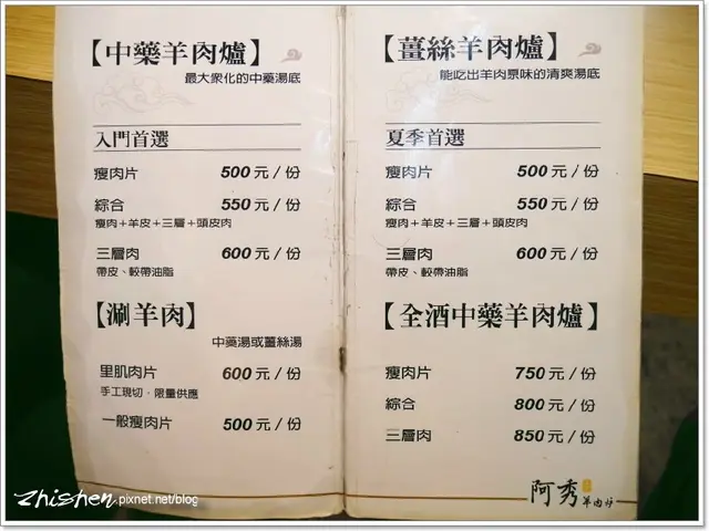 彰化對魯最有吸引力的美食,除了NO.1的爌肉飯,再來就是羊肉爐了,趁著這次跑中彰,也把這望了多年的彰化羊肉爐給吃到了,在幾個老字號中猶豫掙扎之後,魯選擇的是這間【溪湖阿秀羊肉爐】。【溪湖阿秀羊肉爐】就在地幾間老字號羊肉爐來說,應該算是相對現代感些,室內空間也算得上是明亮寬敞,為客人點菜服務的都是在地大姊、阿姨,服務細節上或許沒有高檔餐廳的恭敬謹慎,理解的情況下倒是可以接受。除了招牌羊肉爐的湯頭風味不錯,用料實在價位便宜,應該也是彰化羊肉爐人氣的主要原因之一。彰化的羊肉爐果然還不錯吃,雖然是不用大老遠特別跑來,但如果剛好有來附近走走晃晃,眾多在地小吃顧然重要,但這彰化羊肉爐,肯定是值得您為它留點腸胃空間的啦XDΩMENU因為沒先作功課,就選了最大眾的中藥湯底。吃羊肉爐的肯定會有豆瓣醬之類來的~Ω中藥羊肉爐(綜合) 550NTD沒有上門經驗的,對藥膳風不排斥的話,可以和魯一樣從中藥湯頭下手,溫和的藥膳香、酒香,尾韻帶點甘甜,層次豐富、風味亦不差,相當耐喝。Ω我們的羊肉爐肉類選擇的是「綜合」,有瘦肉、羊皮、三層、頭皮肉,剛好可以一網打盡。Ω金針菇 60NTDΩ羊肉炒空心菜 250NTD羊肉炒空心菜阿姨送錯菜了,不過魯不好意思讓他再換菜,也只好接受。從圖中就可以知道這羊肉炒空心菜羊肉並不會比空心菜來的少,這在家鄉台北難得一見XD調味走的不是重口味路線,醬香中有著合宜鹹甜,空心菜熟度、口感是拿捏得不錯,羊肉片本身沒有特別腥味,口感是比較Q彈緊實些就是。Ω生羊腦(小) 100NTD羊腦魯印象中吃過最新鮮的是在台南的無名羊肉湯(已遷新址),但來了一趟彰化,寶座直接換人坐了。這生羊腦價位便宜、份量驚人,新鮮程度也是一等一,再經過湯頭的粹煉及賦味,整個豐厚濃郁的乳化感美味到嚇到吃手手,本日黑馬Ω好吃到忘了拍照,只有這個略為驚悚的畫面XD,但是真的超新鮮的啦。Ω羊雜炒薑絲酸菜 200NTD羊雜或許是因為新鮮,所以其實本身無明顯異味,而且各種類口感普遍很好,一吃就知道不是久凍貨。靠著薑絲酸菜帶上合宜的鹹甜酸香,雖然走的不是台北常見的蕃茄或是沙茶…等重口味路線,但還是相當下飯。Ω這炒羊雜應該是台北炒羊雜小或中盤的價格,但卻是大盤的份量,而且是主料比配料多,整個羊雜多到感覺快要滿出來,真的是料好實在丫Ω帶皮三層(小) 300NTD因為點了綜合肉沒吃到帶角的帶皮羊肉塊,所以再次加點帶皮三層來做個確認,果然這裏的帶皮三層,與台北切成四角見方成塊的帶皮羊肉不同,這裏是片切呈現,雖然肉的品質其實很好,有合宜油香也有豐富肉味,經過燉煮一樣是帶油帶肉香,但或許是習慣使然,口感上魯還是喜歡帶角帶塊的帶皮羊肉來的多些…查看更多