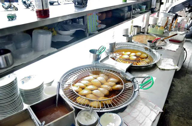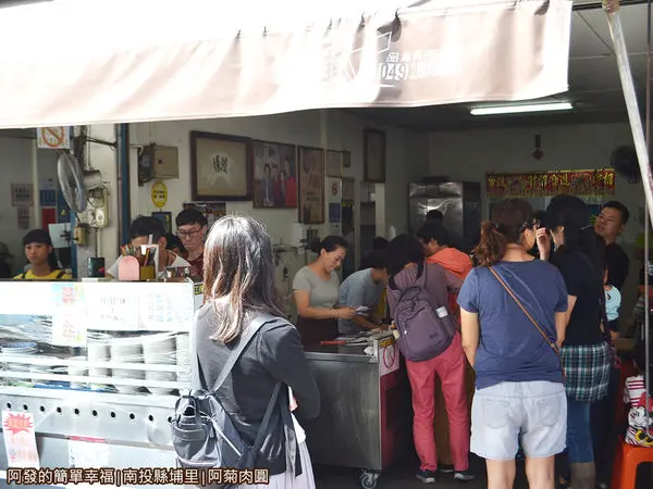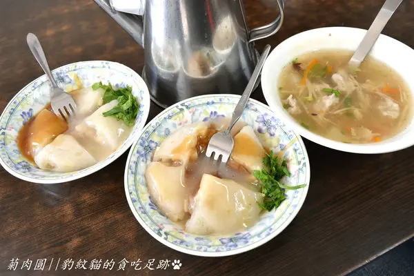 埔里肉圓推薦知名的菊肉圓,這是間很受歡迎的在地小吃,每天新鮮現做,外皮Q肉餡可吃到整塊肉塊,醬汁比例恰到好處,自製的辣椒醬也不容錯過,最後一定要留給肉餡加湯來喝!南投埔里小吃推薦-菊肉圓說到南投小吃,肯定少不了肉圓,除了不好吃免錢的施家肉圓之外,水里的董家三兄弟肉圓也很不錯!這次來到是埔里的排隊名店-菊肉圓。菊肉圓的營業時間是11點半開始,我們到的時候接近中午,沒想到門口的人潮已經滿出來了!這真的很令人震驚呢!附近是市場,所以我們把車停在外圍,再散步過來。而菊肉圓為了消化更多的客人,店面有兩個,有招牌的這個店面餐檯備的是肉圓,另一個店面則備的是肉羹相關餐點。菊肉圓 點餐方式菊肉圓的點餐方式,是到櫃檯先點餐結帳,然後會給予一個號碼,再等待叫號。所以會見到門外有些沒排隊的人,就是在等待入座的客人。菊肉圓 菜單價錢菊肉圓除了肉圓之外,另外也有肉羹的選項。不過這天我們是專程為了肉圓而來的。不要蒜或香菜在點餐時要提出。(菜單拍攝日期為2022.12,餐點或價格若有變動,請依店家異動為主)(店家於2023/02/14公告,3/1全品項調漲5元)一個個蒸好的肉圓,看起來白拋拋細咪咪的,感覺好好吃喔!攤車上有兩個油鍋,如此才能應付人潮不斷的食客。瀝好油的肉圓,再以剪刀剪開來。炸好的肉圓皮,透著晶亮,令人食指大動!用特製的容器裝上白色米醬及蒜味醬油。這麼大的容器,真的可以看出生意很好。剪開的肉圓,完全吸附醬汁。雖然整個店面很滿,但我們沒有等太久就有位置了!但是門口依然是絡繹不絕的排隊人潮。另外煮羹麵的店面,座面稍多一些,兩邊都可以坐,但都要點餐後有號碼牌後,才能依服務人員安排入座,而非是直接入座喔!菊肉圓餐廳底部,是製作肉圓的地方。此處是禁止進入的。這天經過工作人員的同意才入內拍攝,請大家也要遵守規定喔!見到肉圓排排站,真的好酷喔!在容器上放上炒好的筍丁,然後再放上很有肉感的肉條,這個肉圓很有料呢!最後再抹上米漿形成完整的肉圓。最後抹上點油再去蒸,然後再送入油鍋炸。小小一個肉圓,學問及工序很多。桌上有一罐寫著警語的辣椒醬,有不少客人特地買回家,一瓶單買$200。跟著肉圓一起上桌的,還有一壺熱高湯。這是南投吃肉圓的特色。我們是香菜愛好者,所以當然不想錯過香菜帶來的風味。自製的辣椒醬很厲害,嗜辣者真的不要錯過。菊肉圓的每一顆肉圓內,都至少有三條左右的瘦肉條,吃來很有口感,而且能吃到肉本身的香甜。而菊肉圓的肉圓皮,軟中帶Q,而且不會過厚,搭配醬汁,就是很完美的比例。筍丁給的料很多,脆口感也很討喜。在南投吃肉圓,都要記得不要全部吃完,要留點肉餡及醬汁,然後加高湯喝。菊肉圓每桌都有自己一壺高湯,這樣不用走來走去,加上防疫因素,這樣真的安心許多。這次吃到菊肉圓,自己的排行是目前南投第一名,主要是環境、及整體的比例、口感,是符合自己的喜好的。下次要再去吃別家,再來比較看看!…查看更多