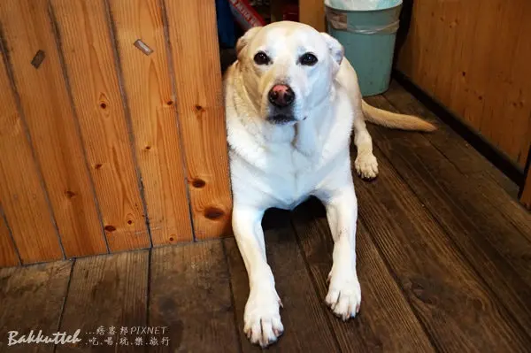 最喜歡好雞婆土雞城的店狗二姊,吃飽後到櫃檯結帳忍不住摸摸他
