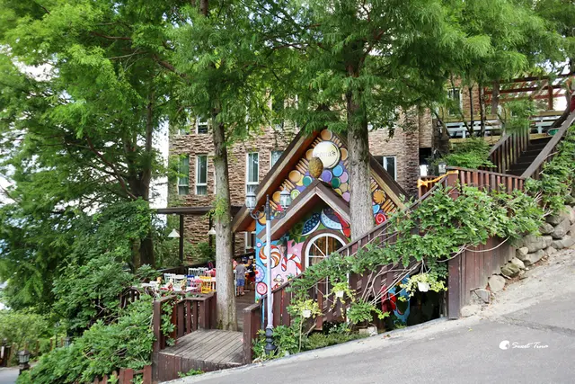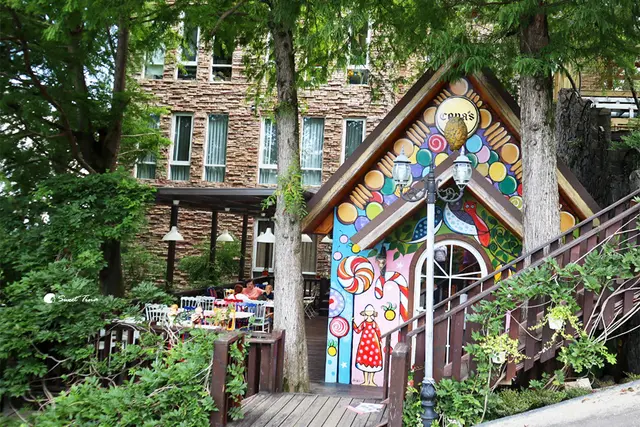 清境創始店的園區不大,但繽紛糖果屋相當童話,周圍還有落羽松林,會讓人想入內探訪。