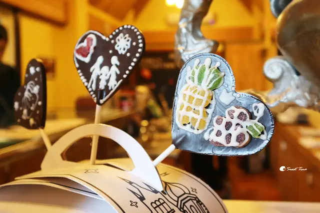 可以選擇做巧克力棒棒糖或星際漫遊食玩,下圖是巧克力棒棒糖,一人份DIY材料包含:調溫巧克力 1人份(3隻棒棒糖) 及裝飾用乾果、棒棒模具 1人一片 (限現場製作專用)。
