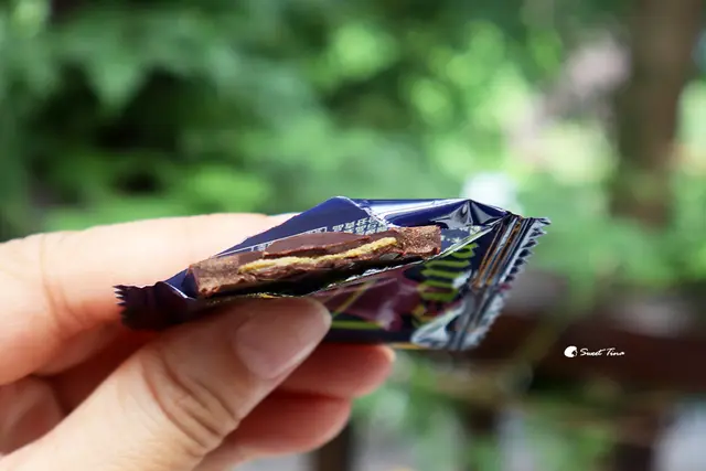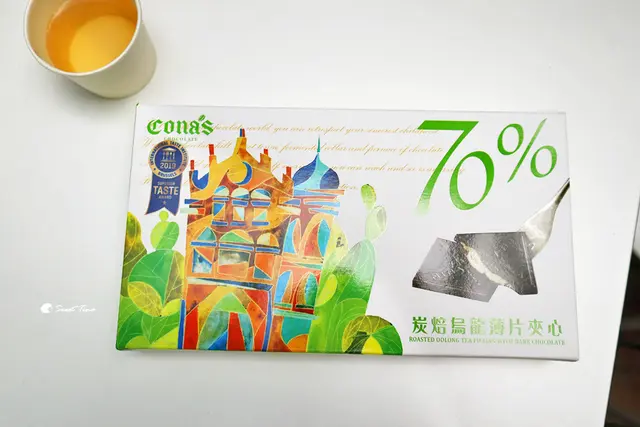 炭焙烏龍茶黑巧克力夾心薄片 - 此口味是全台獨家專利,70%黑巧克力薄片中有深厚的烏龍茶香,第一口先感受到巧克力香醇的口感,最後感受到尾韻的茶香,美味極了!