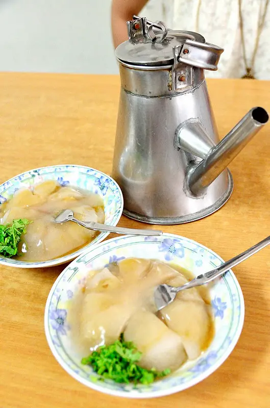 肉圓上桌嘍,附帶送上一個造型奇特的茶壺