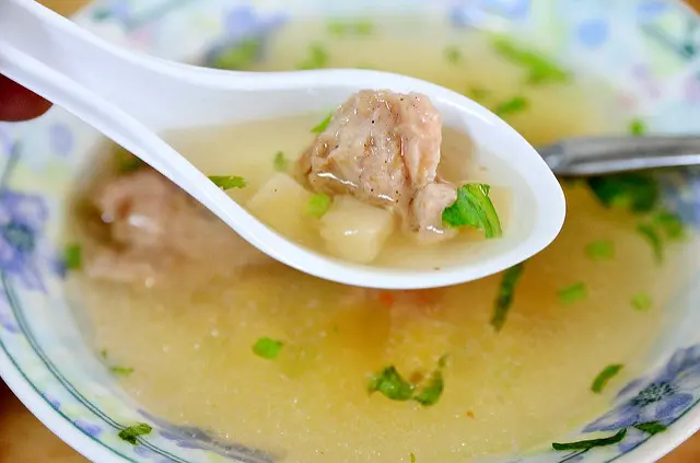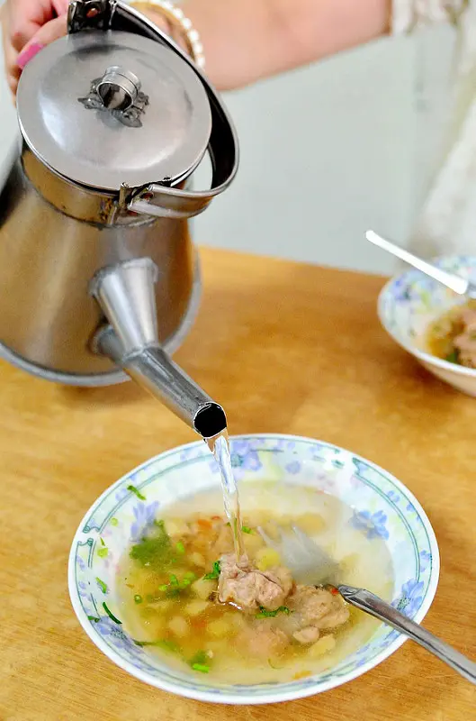 對著肉餡冲下去,就是一道特別的湯品了,肉圓兩吃!