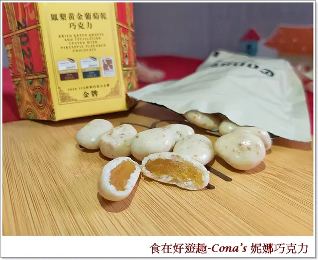 而成的鳳梨黃金葡萄巧克力,吃在嘴裡