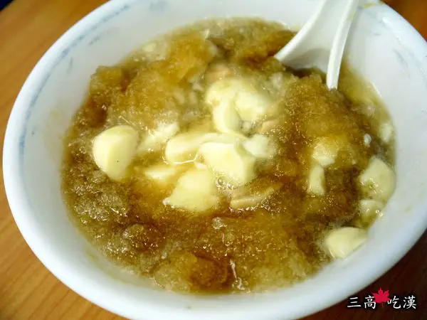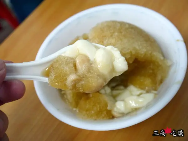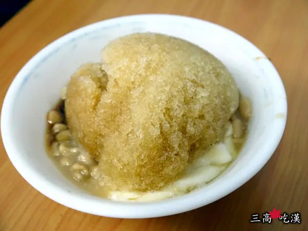 我只點了冰的花生豆花,上面蓋了一坨清冰,並淋上古早味的糖水,