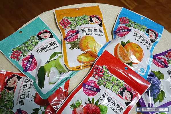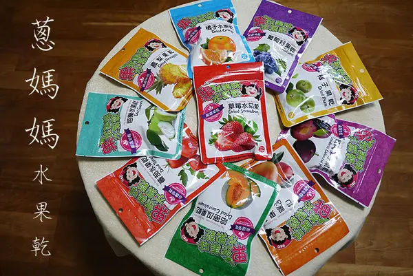 【蔥媽媽】開發出來的產品多元化,除了有年菜、水餃、蔥抓餅、麵、湯品外,又開發出「果然美味—水果乾」,今天體驗的就是大人小孩都愛吃的水果乾,而且口味超多,像是芭樂、鳯梨、橘子、草莓