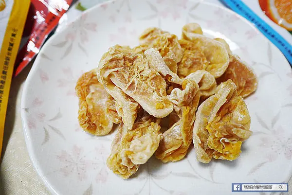 「橘子果乾」聞起來帶有柑橘的芳香,吃起來帶點酸味的纖維組織,是難得嚐到的口味