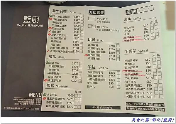 有人問過我,彰化市最好吃的義大利麵店在哪裡 !? 我說真的這問題,很難 .....在網路上收集了一些資料,也看了一些我還沒吃過的店家介紹推薦,於是我選定了彰化師大附近的一家名為"藍廚"的義式料理店用餐 !!