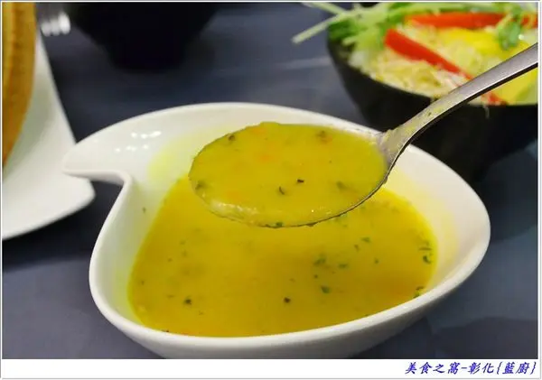 前菜沙拉、沙拉搭配的是特調的油醋醬,由蘋果醋加上低温橄欖油製成,口味微酸微甜,搭配著新鮮蔬果一起吃,脆甜酸的滋味不只超搭而且還開胃,這讓向來不愛吃油醋醬的我竟然吃個精光耶 ~
