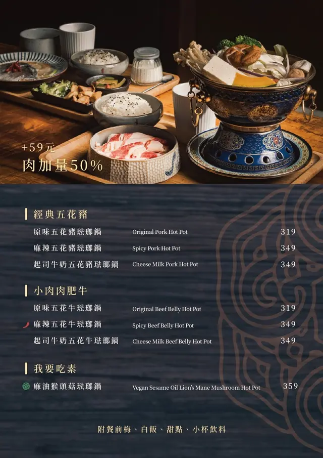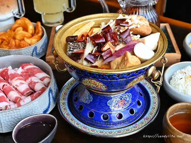 來到金雲堂人文茶館一定要點他們家的招牌火鍋,金雲堂人文茶館的火鍋系列特別選用景泰藍琺琅鍋盛裝,是不是超級美,瞬間讓火鍋質感Level up,除了火鍋外,旁邊還會附上白飯、茶飲及甜點