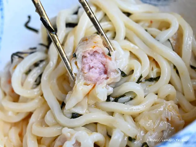 糖糖最愛吃讚岐烏龍麵,口感超Q彈,裡頭添加紅油,吃起來偏小辣風味,搭配大顆飽滿的蝦鮮雲吞,口感紮實,裡頭還包入整隻彈牙的鮮蝦,超好吃~