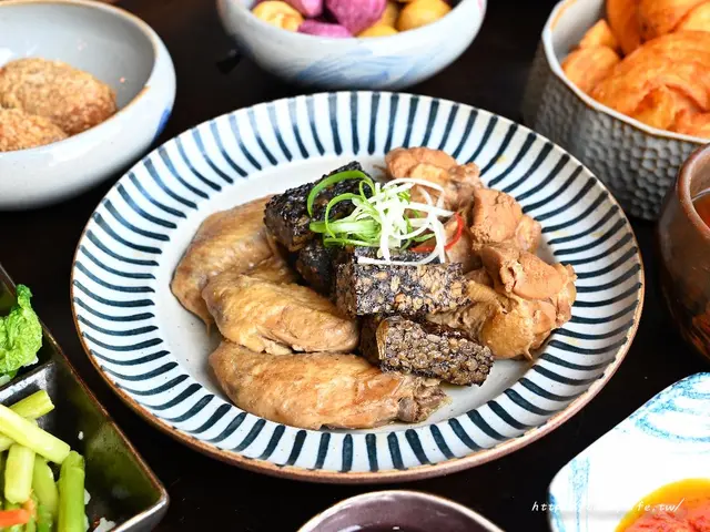 金雲堂人文茶館的滷味是採用黑金醬油下去滷製,是說金雲堂人文茶館的滷味拼盤很特別,有別於一般豆干、海帶、滷蛋的組合,而是米血及三節翅的搭配,米血滷的非常入味,口感超軟嫩,三節翅也不錯吃,肉質不會柴柴的,醬香迷人