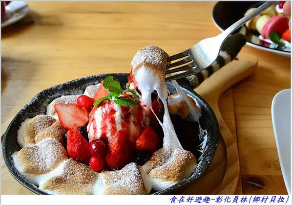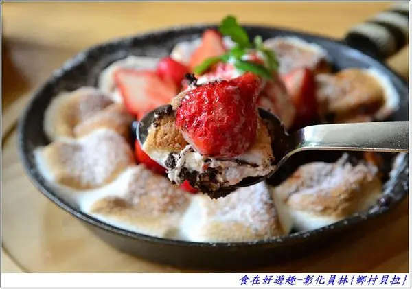 的棉花糖一同挖起,上頭再放上一顆季節限定的新鮮草莓,哇,這一口