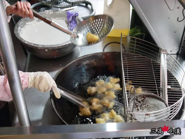 攤子是一位大媽在炸,現在好像一份是30元,不過大多客人都是50元100元在買,