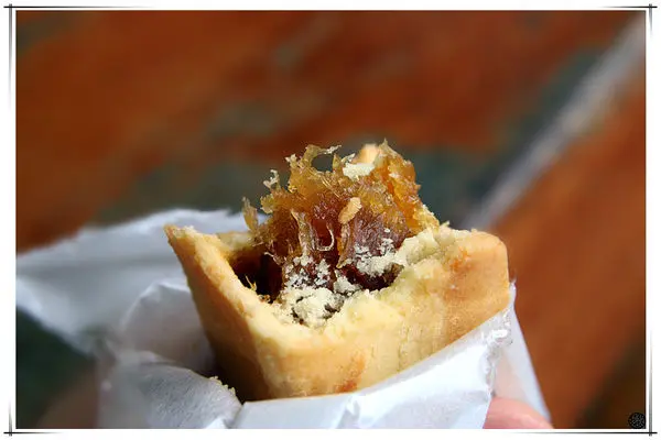 一口咬下,心裡不免大叫一聲,我X,終於又吃到我喜愛的內餡,好酸好好吃!沒錯,阿揪就是喜歡吃酸酸內餡的鳳梨酥,但不是只要酸就能接受,內餡的各種比例也要拿捏得恰,但微熱山丘的鳳梨酥外皮表現就中規中矩。
