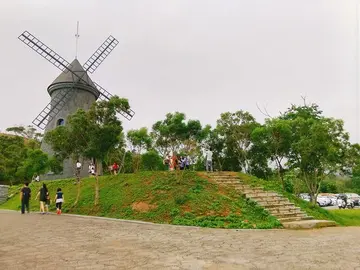 聽朋友說位在頭城山上的城堡咖啡算是可以走走的地方,所以這次在宜蘭最後一站就從礁溪開車到這邊山上喝咖啡看風景,因為靠海所以從山上眺望過去視野很遼闊,真心覺得風景不錯。<上圖:上山途中的風景>從接天宮旁的小路上山,一路上彎道比預想中來的多,路段有幾個地方頗窄需要閃車,才剛到下午的時間,還好上下山的車輛不多,原以為是不是沒多少遊客,到了山上的城堡咖啡才知人多,幸好停車位還夠。城堡一館前方有一座風車,再往後走可以通往才營業幾個月的二館,我就沒過去了,到了山上開始飄起小雨,氣溫也低上不少,一館門口延伸出去的棚子聽說是後來加上去的,不知是不是因應天氣狀況而為之,不過這樣一來城堡的美感度好像就降低了,呵呵。來到店內心想我今天可能還算是運氣好的,因為很快就在一樓找到座位,後來過一陣子就被坐滿了,晚來的客人就可能需要等。因為是類似天丼般的設計,光線可從中庭頂樓的罩幕射入,坐在這邊光線充足~在櫃檯點了榛果拿鐵、太妃巧克力拿鐵、還有一片波士頓派,飲料價格在120~130元居多,說真的也只有很久以前去過一次伯朗的分店,倒是去星巴克比較多,對它的價位範圍沒啥印象。(這個分店價格有比較高嗎?)平常我喝黑咖啡比較多(上班需要提神),這個甜度都還ok就是了,波士頓派蛋糕體的澎軟感還可以,鮮奶油的輕盈度如果再高一些,甜度再低一點,可能就比較符合我的需求,就是不難吃還可以這樣。下午在這邊吃個點心喝咖啡,心情可以放鬆許多~來到咖啡館的頂樓,可以欣賞遠方的海景,這天霧氣比較重,不然應該可以看得更遠!金車伯朗城堡咖啡館地址:宜蘭縣頭城鎮石空路95號查看更多