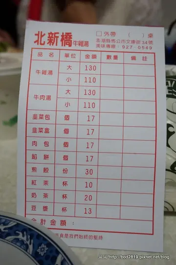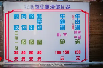 本來沒想到要吃澎湖的早餐,但一聽到有牛肉湯還真的有莫名的動力想要衝去買,剛好它跟鐘記燒餅就開在正對面,完全就是一石二鳥的概念,累得半死早起也要衝一波北新橋牛雜湯真的是當地人跟觀光客都大推的,除了牛肉湯、牛雜湯之外還賣一些煎餃、肉包、餡餅,重點是連這些小點也是大家推爆,喝牛肉湯絕對要配的鐘記燒餅可以先打電話預訂,然後再到對面的北新橋牛雜湯排隊,現在只提供外帶的部分,不能內用嚕,我們當天九點多到,全部都賣光,只剩牛雜湯了......而且排隊的人潮真的沒斷過,而且我們來的時候也沒有牛肉湯,因為牛肉湯只有周一跟周二才有,所以想要喝到牛肉湯話,一定要周一、周二來澎湖玩喔,哈哈北新橋牛雜湯▵菜單菜單也超級簡單,主要就是牛肉湯、牛雜湯、韭菜包、餡餅、肉包、煎餃,我們也只剩牛雜湯可以買,還好還有買其他兩間的早餐,就買個湯還喝喝看吧牛雜湯(小) 130元一開始看到湯頭以為很油膩,跟一般我們在台南喝的牛肉湯很不一樣,湯頭意外的清爽耶,裡面有點薑絲、蔥花,感覺是清燉的口感牛雜湯裡面有牛肚、牛肋肉、牛肉塊、內臟⋯但完全沒有很重的肉味,加上湯頭的爽口度,越喝越涮嘴耶這一塊肉超級嫩口,一口咬下還有點燉到化掉的嫩筋微微黏口,這滋味太美妙了,如果能喝到牛肉湯一定更棒!!牛肚非常Q,不是爛爛的那種,喝完我們一致認同北新橋牛雜湯是澎湖必吃早餐,這一碗喝下去,可以帶著孩子戰一整天,我們給他第一名!!…查看更多