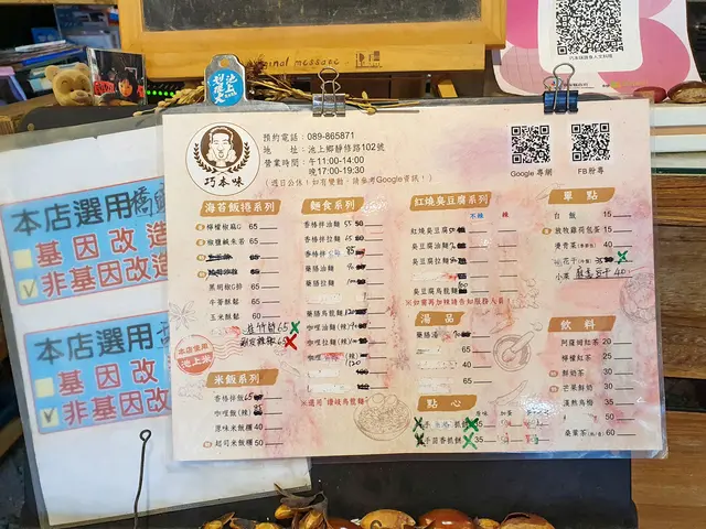 巧本味蔬食人文料理 (宜花東暨離島) 網址: https://s.openrice.com/cHRSlm2h2u800 地址: 宜花東暨離島池上鄉靜修路102號 電話: +886 089865871