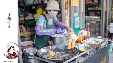 反正來澎湖一定要吃當地最具代表的小吃美食,那就是炸粿,像是赤崁炸粿與洪家炸粿都是外面會有兩隻狗蝦一起炸,大多都是走葷食路線,然後位於馬公市區的《建國炸粿》則是以素食為主的澎湖炸粿,《建國炸粿》一到下午不只是觀光客,連當地人都會來買,《建國炸粿》除了炸粿之外,還以像是炸春捲等等點心。素食者也能吃澎湖美食建國炸粿《建國炸粿》就位於澎湖馬公市的民權路上面,旁邊就是赤崁炸粿跟老家餡餅,也是澎湖當地知名的小吃美食,《建國炸粿》位置也很妙,看起來就像一間招牌舊到不行的五金行,連《建國炸粿》自己本身的攤子看起來也很有年份,是澎湖老字號,原本也是有賣狗蝦炸粿,後來就改成純素食的炸粿,《建國炸粿》營業時間是從下午2點半賣到6點,基本上就是點心時間,來買的人除了觀光客之外,當地人也不少,看著阿姨手腳還蠻快的,幾乎都是現包現炸,吃得到那個熱騰疼起鍋的風味。澎湖建國炸粿菜單價格建國炸粿菜單有一個小紙條,就讓你寫上那個炸物幾份而已,並沒有寫價格,要想知道價格,攤後有價目表可以參考,炸粿才賣30元,炸春捲也才賣30元,另外還有銀絲捲、芋頭跟地瓜等等,總類也算多,而且賣得並不會太貴,然後店裡面賣的潤餅跟春捲不太一樣,潤餅就是一般我們熟知的那種,就是沒有炸過單純用潤餅皮包,而春捲則是用潤餅包高麗菜後去炸。澎湖建國炸粿吃起來有高麗菜的脆甜炸粿 NT$30元《建國炸粿》招牌當然就是炸粿啊!炸粿有一點像是蚵爹,但粿粉的比例可能不太一樣,再來裡面的餡料是最主要不同,在澎胡這邊的炸粿,大多都是炒高麗菜,吃起來味道沒有那麼的重,但很清甜,建國炸粿第一口感就是如此,滿滿的高麗菜,清脆清甜讓人很滿足,想要重一點口味,可以加上一點辣醬,吃起來更爽,外層吃起來超脆,口感也很棒。《建國炸粿》真的是當地的澎湖老字號炸粿,雖然只是做素的口味,但賣的總類比其他炸粿攤來得多一些,吃起來真的很酥脆,還有那高麗菜的脆甜,有機會一定要來試試這個澎湖小吃美食。…查看更多
