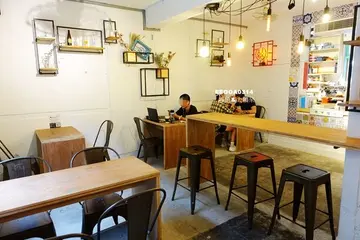 累了,就找家咖啡廳放鬆一下~到花蓮旅遊前發現花蓮市區隱藏著老屋與柴犬的咖啡廳【斗。宅商社Cafe&Bar 】,被那對可愛的柴犬夫妻以及造型咖啡、麵包給吸引,馬上就收入必訪名單內來到斗。宅商社,巷弄內充滿著老屋與文青的元素,每個角落彷佛都有著自己的故事,原本的舊郵局宿舍變成了熱門的IG打卡點,還有好喝的咖啡與可愛的柴犬相伴!很難想像這棟別有味道的老屋就藏身在花蓮市區裡,文青的老屋氣息跟熱鬧的市區形成對比,在博愛街159巷裡每間屋子都相當有特色,有咖啡廳、餐廳及手作商品店等 運氣好的話沒多久就可以找到斗財或是囍妹,上圖是囍妹,趴在別人家門口顧門了~沒想到居然乖乖地讓我拍照ㄟ店門外貼有消費需知,採自助式,不收服務費,低消飲品$65元以上往旁邊走來到了斗。宅商社後院,為開放式的露天座位區,水泥地上擺上幾張的桌椅就相當有味道這裡也可以點餐、取餐,每個角落都充滿著文青及老舊的味道,隨手一拍都很有意境接著總算捕獲到斗財了~跟囍妹一樣完全不怕生,不過就是不看我的鏡頭赤柴焦糖拿鐵我就是為了這一杯柴犬咖啡及柴犬麵包而來,果真相當的療癒~尤其心情不好的更是需要來一杯!光看心情都美麗了起來~品嚐了一口還蠻好喝的耶~濃濃的焦糖香氣喝起來蠻順口的,甜度個人覺得不會過甜!因為採外帶吧形式,所以無論內用或外帶一律使用免洗餐具~原本想點柴犬麵包的,可惜當天已完售,圓滾滾的柴犬麵包外觀相當討喜,好可惜我沒吃到!可愛柴犬手工餅乾沒吃到麵包,於是改點手工餅乾,一樣好可愛!口感及味道也都不錯!可愛柴犬與老屋的美麗結合~相當完美!坐在這裡品嚐著咖啡也是很享受的一件事!還有樓梯可以通往二樓,可以上樓看看老舊房子的陳設,就連馬桶也都還保留著唷!也有提供室內座位,也蠻有氣氛的,不過個人還是偏好露天座位~同一條巷內的乾燥花手作坊,忍不住被吸引進來了,然後也忍不住買了些乾燥花!如果你也喜歡老屋或喜歡柴犬,來到花蓮旅遊記得來斗。宅商社喝柴犬咖啡配柴犬麵包或餅乾唷~…查看更多
