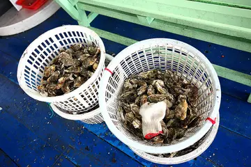 來澎湖玩有許多活動可以參加,像是一般的跳島,或是水上活動,近年來海上牧場也很夯因為特殊的地理位置,在澎湖菜園就有許多海上牧場,在海上牧場可以大啖澎湖牡蠣還可以釣花枝,釣海鱺,算是來澎湖相當老少咸宜的行程現在澎湖也有許多旅店都跟海上牧場合作,可以直接跟旅店購買行程隔天約定的時間一到,海上牧場的商家便會派人來載,相當方便呢 我們是訂飯店時順便就找好海上牧場的店家,我們選的是星光海洋牧場可以選上午或下午的時段,我們是選一點半的時段,剛好可以吃午餐司機大哥會沿路去各大飯店載旅客,然後統一載到菜園遊客中心菜園是澎湖區域地名,也是星光海洋牧場的搭船處,接送來回都不收錢喔 進入菜園遊客中心就先到櫃台報到,因為大概是每兩小時輪一梯次所以我們要等上一梯次的遊客回來我們再搭船過去 要開船了,大家魚貫地登上碼頭,前往海上牧場是乘坐小快艇大概還沒到旺季,要去海上牧場玩的遊客並不太多 其實菜園遊客中心離海上牧場很近,開船不用10分鐘就到了真的是屁股都還沒坐熱就下船了!想說坐快艇吹風還挺舒服愜意的 星光閣樓海洋牧場裡面養殖了四座大池,魟魚,花枝,海鱺,熱帶鯛魚等等除了魟魚只能用餵的不可以釣,花枝,海鱺,熱帶鯛魚都可以釣竿釣 講是講釣魚,當然不是真的釣牠,是用釣線綁著魚塊,丟到池子裡魚就會去咬可以享受跟大魚拉扯較勁的快感,不過感覺魚都吃飽了,看到餌食都不太咬 除了體驗釣魚之外,在星光海洋牧場還有烤牡蠣,海鮮粥吃到飽! 在星光海洋牧場只有兩個小時,所以要真的要把握時間先去拿粥止餓,海鮮粥有牡蠣,花枝,小管,魚片,配料豐富湯頭鮮甜,無限吃到飽! 每張桌子中間都有一個網烤爐,可以去後方的台上自己拿牡蠣來烤 一開始不知道就傻傻地只放幾顆烤,也傻傻的牡蠣開才吃 星光海洋牧場的服務算很好,不會放遊客自己烤,服務人員會過來教你怎麼看牡蠣好了沒原來牡蠣就算熟了也不見得會開,所以是看殼的乾濕度來判斷 那牡蠣不開怎麼辦,服務人員會教你怎麼樣用夾子開牡蠣別看服務人員那麼輕鬆,初學者連從哪裡撬開都是問題,根本看不出來呀! 後來有一個阿伯過來指導,真的江湖一點訣,說破沒什麼!只要知道牡蠣的正反面,往牡蠣的前緣一壓一轉,牡蠣就開了! 知道訣竅之後,我們這桌就開外掛加速了,烤到阿伯都說開牡蠣的速度可以去打工了 狂烤狂開,狂烤狂開! 完全不怕你吃,旁邊還有一簍簍滿滿的牡蠣,有本事時間內能吃多少都你吃! 烤到151都來不及吃了XD 澎湖的牡蠣都碩大肥美,在台灣吃6~7個就要100元,這裡隨你吃呀! 一個半小時,本日戰績:6盤平均一盤15~7顆牡蠣,所以百顆牡蠣下肚~爽呀! 海產新鮮就是好吃,而且我跟151吃百顆牡蠣回去也沒有拉肚子^^星光海洋牧場這裡真的還不錯玩,既可以釣魚,又有美食可以吃除了海產粥跟牡蠣吃到飽外,也有單點付費的海鮮菜色,據說海鮮會比澎湖本島便宜一些是說,我們光吃牡蠣就飽到喉嚨了,有機會人多再來吃海鮮吧!…查看更多