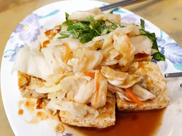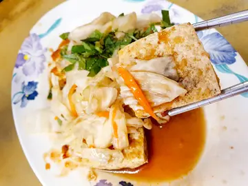 台灣的臭豆腐好像有大塊小塊兩種尺寸,娘家附近的臭豆腐店是大塊的,amy從小吃到大,一直以為全台灣的臭豆腐都長一樣,直到大學時租屋附近偶爾會有賣臭豆腐的車子,買來吃才知道原來臭豆腐有小塊的,而且除了尺寸外、口感也不太一樣呢~,不過都挺好吃的,雖然臭豆腐常被評為外國人不敢接受的食物之一,但amy覺得那是因為他們不懂臭豆腐的美味之處。台東市區的這家『林家臭豆腐』也算是台東知名小吃之一,現在賣臭豆腐的店好像越來越少了,所以有機會遇到名店當然要嚐嚐看囉~。 這裡的臭豆腐比較特別的是它淋好醬之後,又會把醬倒回去醬汁桶裡,感覺好像是為了讓臭豆腐先被醬汁包裹住,但又不要太多,以免影響口感。 店內不大,很多在地人都是外帶居多。 這是小份的,一份$60,口感吃起來還蠻酥脆的,加了九層塔多了特殊香氣,整體來說還不錯,但個人覺得大溪的"阿杏臭豆腐"略勝一籌。查看更多