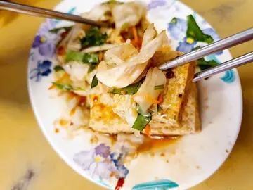 正氣路上排隊美味小吃加了九層塔的特殊風味台東林家臭豆腐十年前我一次機車環島旅行時,到了台東,完全沒做功課的我,就直接走到正氣路來享用美食晚餐,這條路上有著許多知名台東美食,十年前到現在都沒變的就像是這家林家臭豆腐,依舊是正氣路排隊小吃,不管甚麼時段來,店門口都是滿滿的排隊人潮,直接破梗,它們家最有獨特的就是加了九層塔的特殊風味,也造究了來台東必吃的台東小吃之一。在台東市區有兩條美食聚集的路,分別為大同路與正氣路,兩條路上各有知名的米苔目與炸雞店,分別為老東台米苔目與榕樹下米苔目以及藍蜻蜓炸雞與阿鋐炸雞,兩條路相距也不遠才隔兩條路左右,而台東林家臭豆腐就位於正氣路原老東台米苔目旁邊而已,臭豆腐錯是吃巧不是吃飽,因此建議在這吃完臭豆腐還能走跳兩條路吃不一樣的小吃。在這裡用餐兩個人來可以一個去排隊一個去佔位置,點餐要辣不要辣、大份還是小份或者是素食記得要先說,大份120元還有小份60元,小份大約是1到2人份,大份大約是2到3人份,這個價格已經漲過好幾番了,但這家店只又賣臭豆腐,其他啥的都沒有喔!九層塔臭豆腐(小),NT$60元小份的大約有七塊左右,看起來份量還可以,除了臭豆腐與泡菜之外,台東林家臭豆腐獨門就是加了九層塔絲,原本臭豆腐在口感上酥脆配上泡菜的酸辣,最後的九層塔提香,讓人覺得意外,卻又那麼搭配。臭豆腐在高溫油炸後,將外層的豆腐水份也逼了出來,著實達到外酥脆內軟嫩,咬下去還會有微許的噴汁感,喜歡口味重一些的還能加上特調的辣醬,鹹辣卻不會嗆,也蠻不錯的。台東林家臭豆腐首重臭豆腐的外酥脆內軟嫩,除了搭上傳統泡菜吃法外,還加上了獨門九層塔,一吃就會讓人記憶深刻,就好像海邊那黃記蔥油餅一樣用九層塔做不同於傳統的在地味道,來台東一定不能錯過會一口街著一口的排隊小吃。查看更多