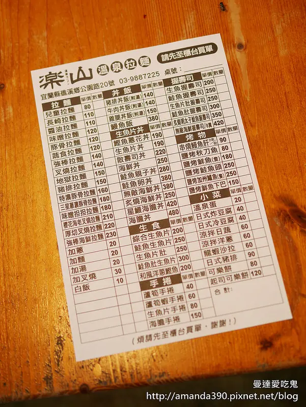 樂山溫泉拉麵 (宜花東暨離島) 網址: https://s.openrice.com/cHRSlm2UMG300 地址: 宜花東暨離島礁溪鄉公園路20號 電話: +886 039887225