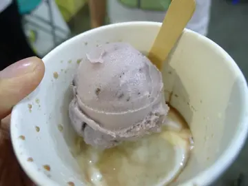 因為現在這邊都塞滿了觀光客 讓我一點想要進來的興趣都沒有~ 但是聽說這邊有一個用天然食材的冰品 還是擠進來了...正當冰在第2排的尾巴~傳統的甜筒是免費的 或是可以選需要加錢的脆餅甜筒杯正當冰的冰品強調的是新鮮食材去處理 不是用濃縮或是亂七八糟的東西去弄 而且是老闆以前開冰果室的長輩教他的 古早味的冰品 蠻好奇是什麼味道 今天的口味有12種 每一種口味都是當季的水果或是特別選的食材去製作的可以避免弄到手 這還蠻貼心的安定芝麻(20) 這個口感好奇妙 不像冰淇淋 也跟"叭佈"不一樣 問了老闆 老闆說 這個是60年前 他舅公算是第一代在賣這種的 當時製冰技術跟現在是完全不同 老闆承接了這個技術來製作 以我來吃 感覺是比較稠的綿綿冰一球20 現在特價三球50甲仙芋頭 還不錯ㄟ 淡淡的芋頭香氣 帶有一點芋頭的香甜金煌芒果 哇嗚~現在這個節氣 吃金煌芒果清甜的感覺 好夏天喔~~我喜歡^^巧克布朗 巧克力味很濃 因為有點像綿綿冰的感覺 所以口感很清爽嘉寶果 差一點忘了吃他阿!!樹葡萄裡面果粒真大顆阿 入口就是一般的葡萄味 但是後味跟一般葡萄很不一樣 好妙 真想整顆吃吃看是什麼樣子老闆原本是在台北做系統工程師 去年的食安風暴給他很大的衝擊 讓他重新檢視自己吃的東西到底是什麼 加上當時工作環境讓他很不爽 就跟他舅公學做古早味的冰品 回花蓮開一家用正正當當的態度做冰品的店 所以才叫正當冰…查看更多