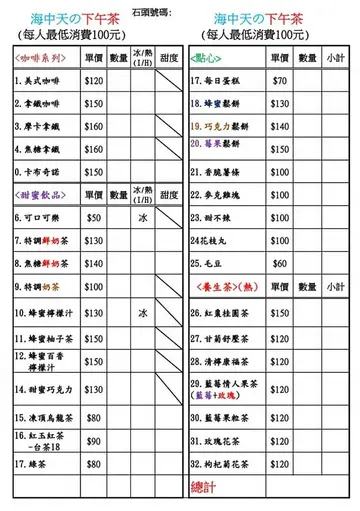 一望無際太平洋海景就在腳下真是太讓人驚艷了,花蓮海中天會館不僅是民宿、露營區也是懸崖上海景咖啡廳,【海中天咖啡廳】就跟民宿結合一起,除了視野絕佳海景外,還有大草皮、鞦韆、溜滑梯及沙坑等設施,是花蓮悠閒看海、下午茶、溜小孩不錯的景點!【海中天咖啡廳】位於壽豐鹽寮,距離遠雄海洋公園不遠,咖啡廳低消100元,沒有限制一人一杯飲料很可以,民宿跟咖啡廳一起,露營區則另外有區隔開來,有提供免費停車場咖啡廳有一片大草皮,很適合放風小孩,不過還是要注意孩子動態,一旁就是一望無際太平洋咖啡廳有半露天及室內,一樓都是咖啡廳的部分,二樓則是小木屋住宿,非住宿客不能到二樓,我想二樓的視野一定更好有很大一片瞭望台,可以捕捉最美的太平洋海景,好天氣真是太美太療癒了,看著這片無敵海景心情都舒暢了起來咖啡廳旁就是露營區【風七十營地】,營地一樣建在崖上,離海是那麼樣的近,夜晚可以伴隨海浪聲入睡,清晨張開眼就能眺望大海,好幸福啊!草地上有溜滑梯、蹺蹺板等兒童遊樂設施,巨大的高跟鞋我遠看以為也是滑梯,結果好像只是裝飾用當天的天氣真是太美好了,海天一色搭配著遠方山景真是讓人醉心,坐下就不想走了絕佳的海景第一排座位,看著海景、喝著咖啡、享受海風徐徐,真是太美好【海中天咖啡廳】菜單及價格提供飲品及點心、鬆餅,價格要比一般景觀餐廳消費便宜,低消不貴又有無敵海景相伴,這樣的景觀咖啡廳很可以啊這景真是太愛了,可以盡情享受放鬆及放空的無敵海景往咖啡廳後方走沒想到還有驚喜,除了一樣有絕佳視野海景外,還有沙坑耶建在崖上的海景咖啡廳民宿,也頗有到國外度假的感受這裡也還有一個瞭望台,來到【海中天咖啡廳】可以海景看到飽,也相當好拍照,怎麼拍都好美室內用餐空間及鞦韆,當天因為風實在太大,所以我們是坐室內,室內的視野也是很好,一樣可以看到無敵海景喔!來到花蓮,不容錯過的海景咖啡廳,這樣的視野這樣的消費CP值很不錯!…查看更多