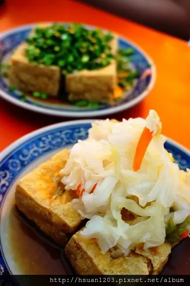 小小的攤位,騎樓下的幾張座位,在地深耕的游翁韭菜臭豆腐,有著獨特的口味,就這樣的在鳳林鎮上飄著香。位於鳳林國小對面的游翁 韭菜臭豆腐,下午開始營業。疫情期間(2021.08.25到訪),只能外帶,買一份回車上吃吧!除了像我們一樣的外地遊客慕名前來之外,也深受在地人的推荐,雖然是平常時間造訪,前來嚐鮮的饕客還是絡繹不絕。一桶又一桶的臭豆腐,就這樣擺在攤前,備貨量如此之大,想必生意應該不錯才對。顧客持續的上門,大桶裡的臭豆腐也一塊一塊的減少。攤前還擺著一項最重要的食材,就是一把又一把翠綠的韭菜。雖然是小攤,但選擇還蠻多樣的,右邊的點餐單是2021最新版,看起來只有小小的漲價。來到這,當然不然錯過的就是這號稱全國唯一的韭菜臭豆腐,將炸到酥脆的臭豆腐先挖個洞,接著放入大把現切的韭菜,淋上醬汁後就成了在地的美味。要吃的時候先將撲在上頭的韭菜壓入臭豆腐中,入口後沒有韭菜的嗆辣腥味,還多了股獨特的清香風味,也顛覆了臭豆腐要加泡菜才好吃的既有印象,再配上一碗韭菜豬血湯,清爽的湯頭,同樣讓人讚不絕口。除了豬血湯之外,炎炎夏日不喜歡喝熱湯的朋友,也可以來一杯他們家的古早味紅茶喔!如果您還意猶未盡,不妨再來上一碗大腸麵線。滑嫩爽口的麵線,搭配著滷得入味的大腸頭,恰如其份的美味口感,相信您也會愛上他的。原本平凡的臭豆腐,在加入了韭菜之後,成了最不平凡的美味,來到鳳林,記得午後三點,來嚐嚐韭菜臭豆腐。…查看更多