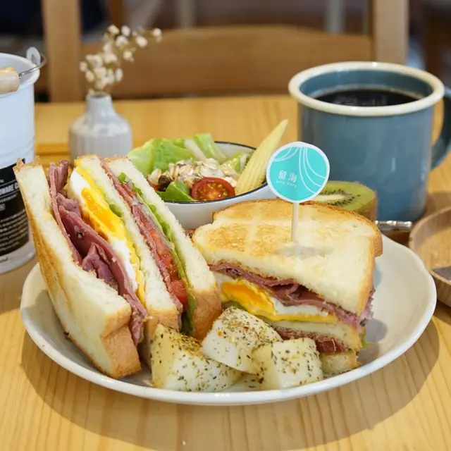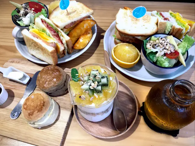 每次回到花蓮,總有好多餐廳是沒聽過也沒去過的,感覺好像一直有新餐廳在開呢!而且看到打卡的照片都蠻有特色的,讓我默默收入口袋名單的就有好幾間。這間留海是之前去隔壁的小小兔子廚房吃飯看到的,外觀木頭打造的門面,叫人不注意也難,所以特別找了個平日的中午,一行四個人來這裡吃早午餐。這裡除了是餐廳,也是一間選品店,有賣一些品味生活用品。店內的裝潢也是和門外一樣都是原木的風格,大片窗戶灑進的自然光,讓整間店充滿明亮又溫暖的感覺。 主要提供輕食、司康,櫃檯上還有菜單上沒有的菜色喔!煙燻雞肉三明治,看起來好豐富,夾了滿滿的肌肉、生菜,還有半熟蛋看起來真可口。烤過的土司吃起來是軟的,餡料調味很不錯,吃起來好吃又有飽足感。帶皮薯條以及沙拉的口味都不錯,還有一小顆柳丁,整個就是吃完會很滿足。 燻鮭魚三明治,其實就是上面的煙燻雞肉換成燻鮭魚,燻鮭魚的味道比較重一點,吃起來也是一樣好吃,不同的感覺。 鄉村野餐就是長棍麵包做成的法式土司,外酥內軟跟一般的法式土司口感比較不一樣,搭配了好幾顆牛肉丸子,我們都覺得太多顆了一點,因為本身比較不愛丸子類的東西,一次來六顆還真的是吃不完啊!旁邊有沙拉和優格還有奇異果,感覺好健康,擺盤配色也很漂亮。 優格杯是點餐櫃檯上看到菜單上沒有的,我立刻就點了一份。優格最底層是手工果醬,中間還有一層堅果,最上面是柳丁和奇異果,吃起來非常清爽,我很喜歡優格搭配水果的味道,吃起來不會有膩的感覺,又很豐富的口感,整個人就感覺很健康。看到店裡好多口味的司康,想說應該是他們的招牌,所以也單點了兩顆來吃吃看,珍珠糖和肉桂葡萄口味的都蠻好吃的,搭配奶油和手工果醬更有不同的風味。這裡的司康軟硬度剛好,不會太乾,有點酥酥的口感,我覺得算是好吃的。肉桂葡萄味道很香,珍珠糖本身帶有一點甜味,兩種都蠻好吃的,喜歡吃司康的人可以來試試,應該不會失望。點餐附的飲料只有紅茶,要點其他飲料就要補差價,我們有三個人都點了拿鐵咖啡,沒有加糖的拿鐵,咖啡和牛奶的比例剛好,不會苦卻帶有咖啡香,味道不是太濃重的那種,還蠻溫順好喝的。紅茶是用冷泡茶泡的,也是無糖的,乍看之下覺得這紅茶的顏色怎麼這麼淡,不是一般傳統我們想像的那種紅茶,我是覺得味道也比較淡了一些,但是茶香還蠻不錯的。四個人一共1210元,平均一人300元,說實在最近在花蓮吃的餐廳都大概這個價了。不過我們都覺得還蠻喜歡這裡的,用餐環境很舒服,餐點也好吃,不管你是要來吃早午餐,或只是來喝杯咖啡吃個司康當下午茶,都很適合。那天也看到有些人是一個人來的,靜靜的坐在那喝咖啡看書,氣氛很好,個人覺得還蠻值得再訪的喔!…查看更多