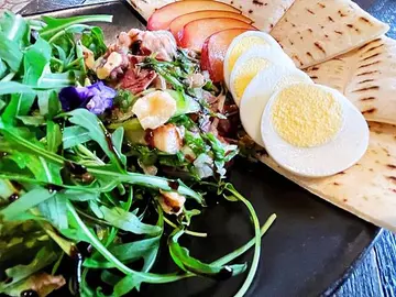 從台北到宜蘭好適合一日遊喔!這天也是臨時起意,就開車前往宜蘭逛逛,順便吃吃東西!本來想要吃點小吃,結果好多地方都好多人,忽然想到這間之前在網路上很紅的蒔花咖啡,就想說乾脆來個下午茶吧!位於鄉間小徑中的白色建築物,裡面有停車場,剛好有位置。 整個空間其實不小,設計得也很有品味,店內的用餐環境也很舒適,有種置身歐洲的感覺,難怪很多網美可以把照片拍得那麼美! 餐點價位偏中上,大概一份餐點要兩三百以上,飲料也是兩百左右,都是單點的。我們點了櫻桃鴨烤餅,有很多生菜沙拉和調味過的鴨肉,搭配烤餅包著吃還蠻好吃的,只是份量不算多,屬於輕食類。 因為我們是來下午茶的,所以點了一份鹹的,另一份就點甜的囉!提拉米蘇算是好吃的,味道非常濃郁卻不甜膩,軟綿綿的口感,吃完整塊也不會膩,蠻推薦的喔! 熱拿鐵的擺盤也蠻美的,咖啡的味道很香濃,算是好喝又好拍的一杯咖啡。 洋甘菊花茶的茶具也蠻漂亮的,茶也好喝,還可以回沖,搭配甜點剛剛好。 整體用餐的感覺很舒服,餐點也還不錯,只是不算便宜。偶而來悠閒一下聊聊天倒是不錯,而且室內室外都蠻好拍照的~ …查看更多