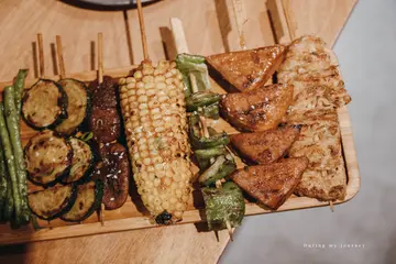 結束一整天在宜蘭的工作後,肚子被下午茶填滿,雖然已到晚餐時間卻一點也不餓,還是陪朋友來到路邊烤肉蘭礁店吃晚餐,這裡的串燒價格親民,大多銅板價就能解決,溫潤的木質調搭配暗色系的工業風格營造有如居酒屋的氣氛和質感、甚至結合衝浪與海邊的元素,增添了一股度假的悠閒,完全顛覆對一般平價串燒店的印象。串燒鹹甜的口感非常開胃,雖然已經很飽,讓我又不小心多吃了幾串,除了宜蘭之外全台有多間分店,台北也吃的到,造福了喜歡吃平價串燒的我們。 宜蘭礁溪美食小吃|路邊烤肉蘭礁店好久沒來宜蘭礁溪了,這次與朋友約好一起吃晚餐,由於當天下午茶太飽,最後選擇了,可以不用擔心份量的問題。偌大的玻璃窗、溫潤的木質色調與暗色系的工業風格融入的恰到好處,宛如走進居酒屋般的舒適放鬆,在網路上看到店長與店員們因爲愛衝浪而搬來宜蘭生活,店裡不難發現多了衝浪與海洋的元素,也增添了一股悠閒的度假氣氛。 店裡明亮溫暖的燈光收留了一整天疲憊的心,透明的玻璃窗貫穿了整個空間,讓視覺上看起來沒那麼狹隘,甚至能看見店員在燒烤的過程,感覺更加安心。路邊烤肉從宜蘭羅東創始店開始發跡,目前在全台共有14間分店,原本擔心要來宜蘭才吃的到,一查才發現台北就有好多間分店,內心頓時開心了一下,之後也能在台北回味了。 路邊烤肉蘭礁店菜單介紹需要自行夾取想吃的食材再入座,價格已經清楚的標示在牆上,大多是親民的銅板價,有雞肉、羊肉、牛肉、豬肉、蔬菜、經典串燒等等,也有提供飯、麵、湯的選擇,讓串燒不只是宵夜、還能完美的當作正餐,若家裡附近開一間,一定會不定時光顧呢! 路邊烤肉蘭礁店餐點 通常串燒的肉類價格較高,平常都會習慣點豆干、櫛瓜、甜不辣、青椒、香菇等等,因為我是屬於幾餐不吃肉也沒關係的人,這樣簡簡單單的吃就容易有飽足感了,的醬汁屬於鹹甜的日式口感,而且食材都有入味,並不是單純表面有味道而已,當天吃了幾口瞬間開胃,讓原本飽到吃不下的我也忍不住多吃了好幾串。 我個人偏愛甜不辣、豆干這一類,甜不辣外皮帶點微酥、內裡是很有彈性的,嘗起來香氣十足,四季豆也烤的很清脆好吃,像在吃零食般涮嘴讓人忍不住一口接一口,朋友特別點名玉米筍,烤過後特別清甜,整體來說都蠻滿意。 日式烤麻糬可以選擇甜或鹹的口味,甜的會淋上奶香濃郁的煉乳,嘗起來帶有微微的焦糖香氣以及軟糯的嚼勁,原本吃一口沒特別感覺,後來化在嘴裡的味道越嚼越香甜,忍不住又會想多吃幾口,讓正在飲食控制的我差點破戒。 …查看更多