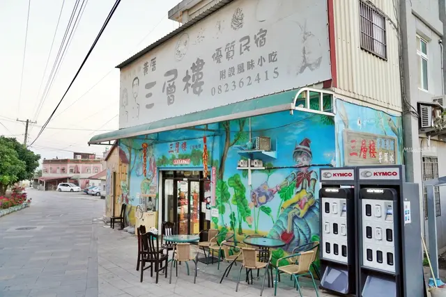 以前因為小金門交通很不方便,到金門後還要搭船轉到小金門太麻煩,因此很少有動力再來小金門吃我朝思幕想的芋頭冰。直到這次剛好遇到金門大橋開通,迫不及待跟朋友從湖下海堤拍完有金門大橋的海堤夕陽後,隨即從金門大橋驅車跨海去,只能說,騎摩托車真的有點吃力,海風好猛但好爽。湖下海堤在湖下海堤望著建設中的金門大橋都不知道幾次了!盼阿盼阿,終於開通了,這趟來又專程來看已經開通了的金門大橋湖下海堤夕陽。只是這一趟只有三天兩夜,所以沒租車,只租摩托車,比較青春熱血一點。湖下海堤有一個必拍的網美景點就是這裡。這裡原本應該是候車亭吧?沒有窗的窗框變成最佳取景地。隨便拍都很美在金門遇到夕陽的機率很高,很幸福還會看到在地人趁著退潮來挖海產。金門跨海大橋盡頭處在騎個幾分鐘就到了我最想念的芋頭冰。多年不見,三層樓現在彩繪的好漂亮還有經營民宿,是餐廳也是冰店,更是民宿。到的時間果然有點太晚已經沒提供熱炒等晚餐選項幸運的是還有芋頭冰可以吃,不枉費這一趟。牆上都是老闆的收藏吧。小金門的特產就是這種小芋頭所以這裡除了有芋頭冰以外還有芋頭全餐等。小金門的芋頭以口感香、鬆、綿、入口即化聞名,贏得「香芋頭」、「紫寶石」美名。還有自產自銷伴手禮也都是芋頭餅乾跟相關特產。金門紀念品老闆親自做芋頭冰黃厝三層樓芋頭餐館|MENU離島的物價本來就不便宜,但看起來價格其實跟本島差不多只是可能這趟來吃不到熱炒與芋頭入菜的餐點,下次要早點到了。總之就是必吃芋頭冰或者芋頭餐就對了。芋泥桑椹紅豆花生芋圓牛奶冰|NT$.100元招牌就是這一碗啦!料這麼多才100元真的很可以。而且這名字已經把所有材料都點名一輪了,好可愛。香綿濃郁的芋頭泥當然是主角但店家自己熬煮的桑椹也很好吃,芋圓超Q然後紅豆+煉乳+脆脆的花生更是加分堆疊出超多層次的一碗冰,我覺得這一碗可以吃蠻飽的XD。芋絲手捲|NT$.300元這雖然很貴但真的好吃,只是兩個人吃有點多。老闆把芋頭切成很細的芋絲拿去炸,然後用海苔捲起來淋上美乃茲這樣,別看這作法不難,但功超細的,因為金門芋頭本就小,要切這麼細絲很不容易。每一口都很脆香,美乃茲讓整體口感更潤滑並增添香氣,海苔也是功不可沒,總之我個人覺得非常好吃,就是真的兩個人吃有點太多,當天吃到的芋頭量超標,而且芋絲細脆到會刮嘴,以後要烙人來吃才敢點這一道了。總之現在離小金門更近更方便,以後去金門可以動不動就騎去小金門玩玩,三層樓芋頭冰距離我不再遙遠,我可以N訪全制霸,芋頭全餐我下次再來。…查看更多