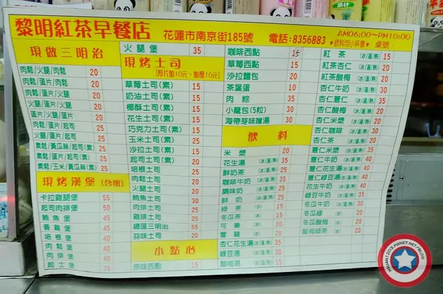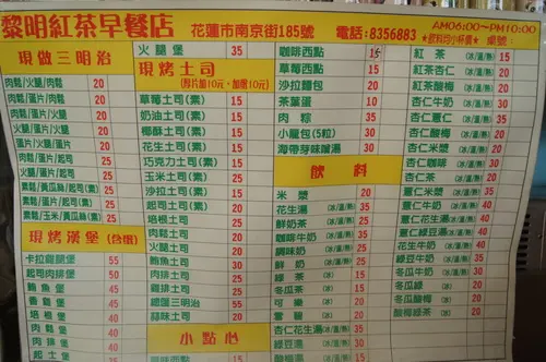 來花蓮我不太往市區跑,常常到比較郊區看看好山好水,這次入住的路徒行旅 東大館就位在花蓮市中心,周邊美食林立,剛好來一探花蓮必喝的紅茶花蓮必喝三大紅茶就是鋼管紅茶、廟口紅茶、黎明紅茶,入住的旅店沒有附早餐,讓我有機會一早來這裡幫大家採買早餐,走過來也只要7分鐘黎明紅茶是一間已經開了超過30年的老店,位在小巷內不好停車,一早7點多來就已經滿滿的訂單了,要30分鐘耶,讓我有時間慢慢拍最好拍的就是它復古的門口,刷一排IG每個人都要手拿紅茶跟這個景來一張,保留古早的裝潢設計,老店看起來就別有一番風味現在已經開放內用,位置就在店外,用餐後記得主動幫忙回收喔來到黎明紅茶除了紅茶必喝,他們家的小西點也是大家搶著帶的小點心,其實就是台是馬卡龍啦,小時候常吃鬆鬆甜甜的那種小圓餅但它們家的是做長條狀,一份是19元,有原味、草莓、咖啡三種口味,你可以單買一片,也可以買一整包綜合口味,第一次來當然全部通通要黎明紅茶的菜單有嚇到我耶,整個品項也太豐富了,蛋餅、漢堡、吐司根本是基本款,還有麵類、紫菜湯、炒蛋......,真的從早餐吃到晚餐沒問題飲料品項也太多元,喜歡它們家的紅茶也可以買茶包回家煮,有人也很推薦它們家的花生湯,除了杯裝還有大罐的,光是選飲料我也是在那邊選擇障礙很久紅茶 (大) 35元 / 豆漿 25元 / 鮮奶茶 40元紅茶就是古早味的那種,喝起來甜甜的,紅茶一咪咪的茶澀味,不是苦澀喔,這個味道搭起來就是懷念的味道鮮奶茶我們也覺得不錯,基底的黎明紅茶搭鮮奶更加順口,豆漿有分有糖跟無糖,下次想試試"紅茶酸梅"~哈綜合蘿蔔糕 35元蘿蔔糕還OK,口感軟軟的也很香蔥仔餅(6個) 45元兒子很愛蔥仔餅,表皮煎到微微焦香,6顆吃完會很飽耶玉米蛋餅 35元九層塔蛋餅 35元我們都愛九層塔蛋餅,九層塔的味道超香,跟QQ的蛋餅皮很配,我覺得大家都要來吃吃看,有種勾人的香味綜合西點(10片裝) 190元10片裝就給他帶著走啦,這一樣小帶也好適合當作伴手禮送人,但因為它是長條形的吃完一片就會很飽,還蠻建議可以兩個人分食一片這個小西點一點都不小,真的是小時候去老麵包店買到的那種小泡芙,它的名字也叫牛粒或牛利,現在人都覺台式馬卡龍左邊是原味的大家都說好吃,外皮酥脆裡面鬆軟帶著奶味香甜,右邊粉色的是草莓,就是一般般古早味的草莓,有點像草莓粉那種咖啡我自己很愛,是輕鬆小品的那種咖啡牛奶香,畢竟這是古早味小吃,大家欠萬不要用精緻蛋糕的那種味道去看他,我們就是愛這種老味道黎明紅茶真的很夯,雖然要等比較久但店家的態度都很親切,很多人看別人介紹來訪後都嫌東嫌西,我自己是覺得口感看個人啦這是30多年的老店,從以前現在都是這樣做,現在人嘴真的都很刁,真的不能用精緻美食來跟古早美味相比,吃的感受是不同的我就是為了門口的景來,雖然等了30分鐘拍到也很開心,老店就是賣你懷鄉的口味,我們就抱著嘗鮮的心,下次再探其他兩家~哈…查看更多