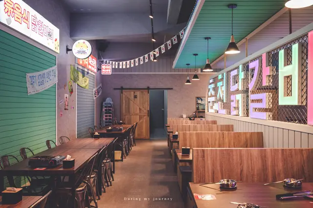 餐廳以色彩繽紛的視覺呈現韓國街頭文化的意境,尤其是不斷變換的韓文霓虹燈更是吸引目光,融入了韓國流行文化和都市風格,充滿著明亮與熱鬧的氛圍,雖然沒去過韓國,卻很身歷其境。