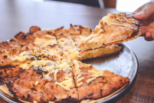 海鮮煎餅裡主要包裹著滿滿的鮮蝦,讓Pizza吃起來相當厚實,煎餅則帶著陣陣焦香,口感上還多了一層脆度,這一份飽足感很夠啊!