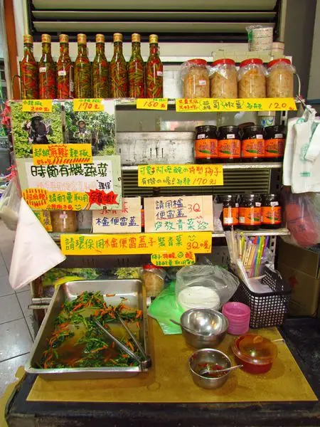 也有店家自己製作的辣椒、蘿蔔、嫩薑,喜歡的人也可以買回去配飯吃。