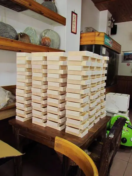 桌上一堆堆的竹盒便當,不知道是不是因為這竹盒的關係,所以他們的米飯吃起來特別香Q,好想拿回去試驗看看。
