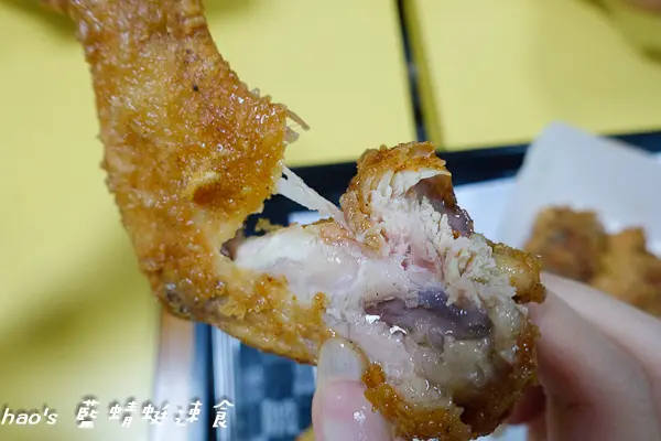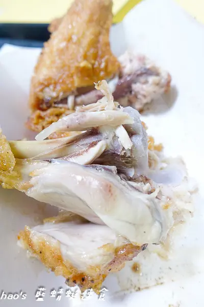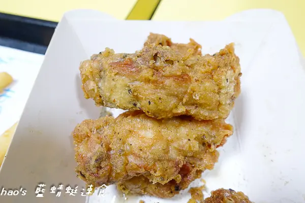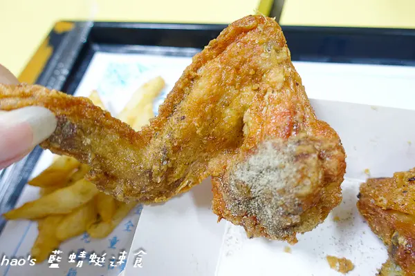 炸雞外皮呈美麗金黃色,灑上大量的白胡椒粉,熱呼呼的,油香四溢。