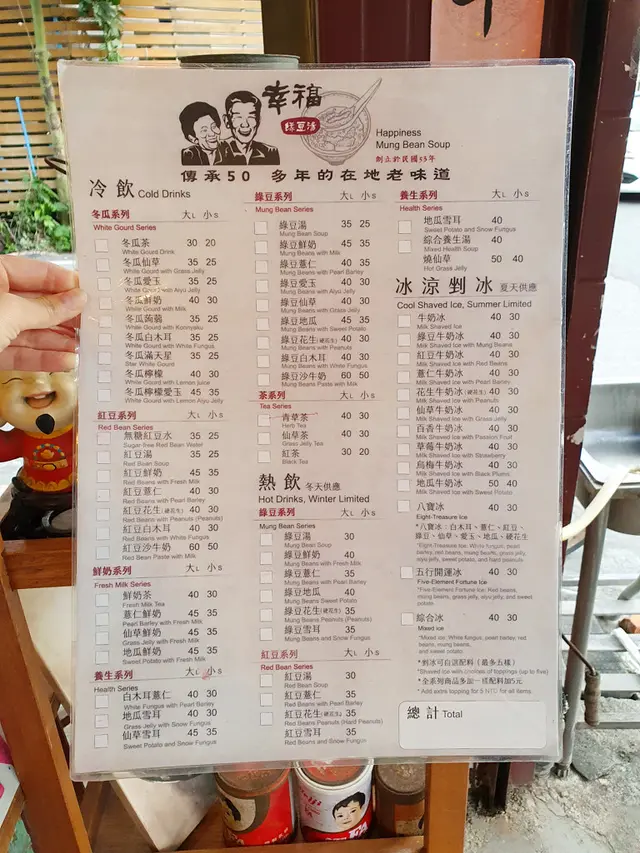 幸福綠豆湯菜單,來台東旅遊的外國人很多,還有英文說明很國際化