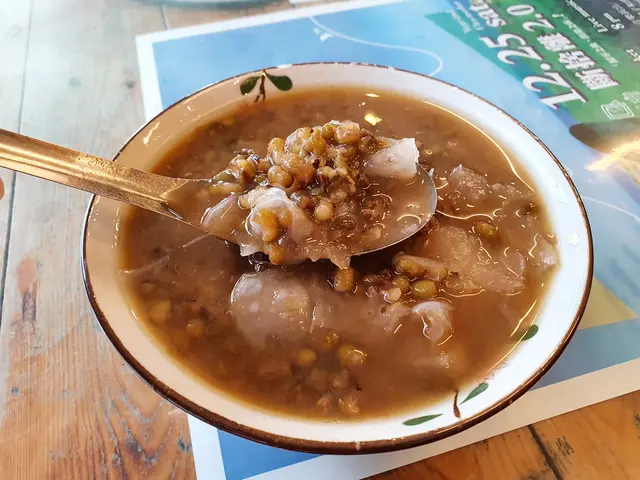 但是店裡的甜湯真的不會太甜,水、綠豆、黑糖、二砂糖傳承自阿公手藝的黃金比例,甜的剛剛好