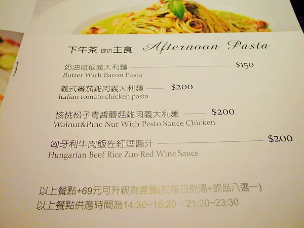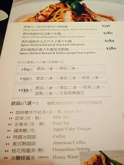主餐加價69元 飲品(8選1)+湯品(2選1)
