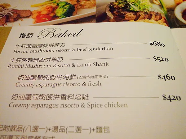 加價139元 飲品(8選1)+湯品(2選1)+前菜(3選1)+甜點(3選1)+主廚推薦麵包