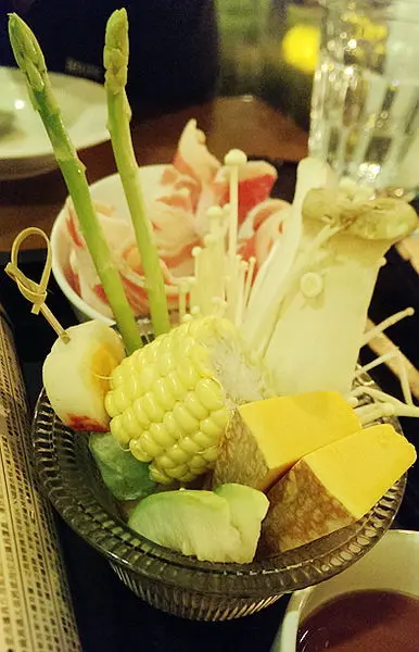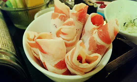 肉片有(豬、牛、羊)可選,肉片看起來頗新鮮的,至少沒有軟趴趴的,只是油花稍微多了些,怕胖又愛吃