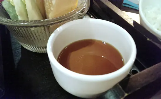 這是店家自製的火鍋沾醬,使用蘋果醋自然釀造而成,清爽、不油膩、無負擔,如果吃不習慣的話,店家有另外提供沙茶醬